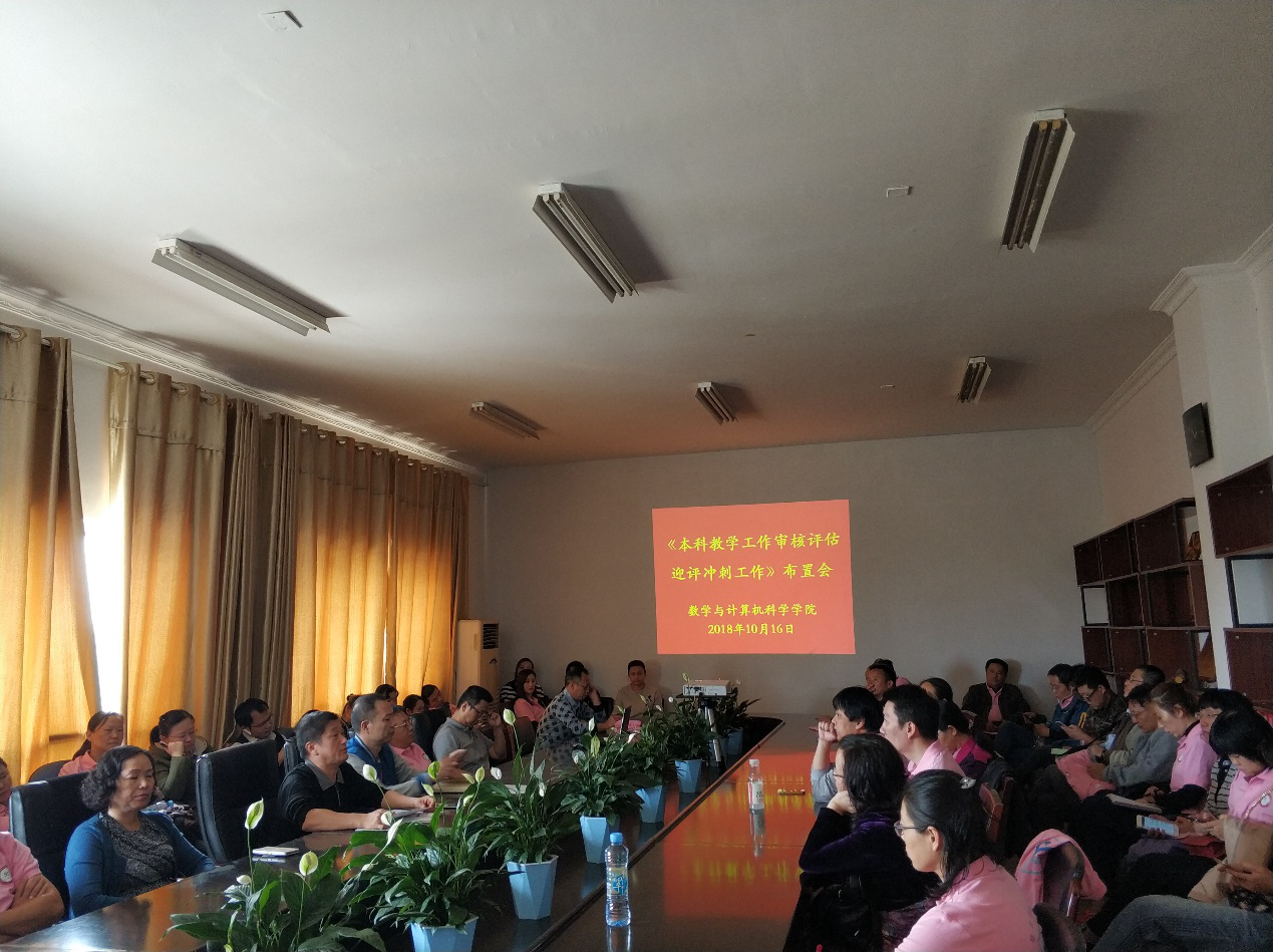 10月16日下午两点,数计学院在红角洲校区c459会议室召开本科教学工作审核评估冲刺阶段动员大会,全面部署审核评估冲刺阶段各项工作,会议由院长舒斯会主持,全体教职工参加。