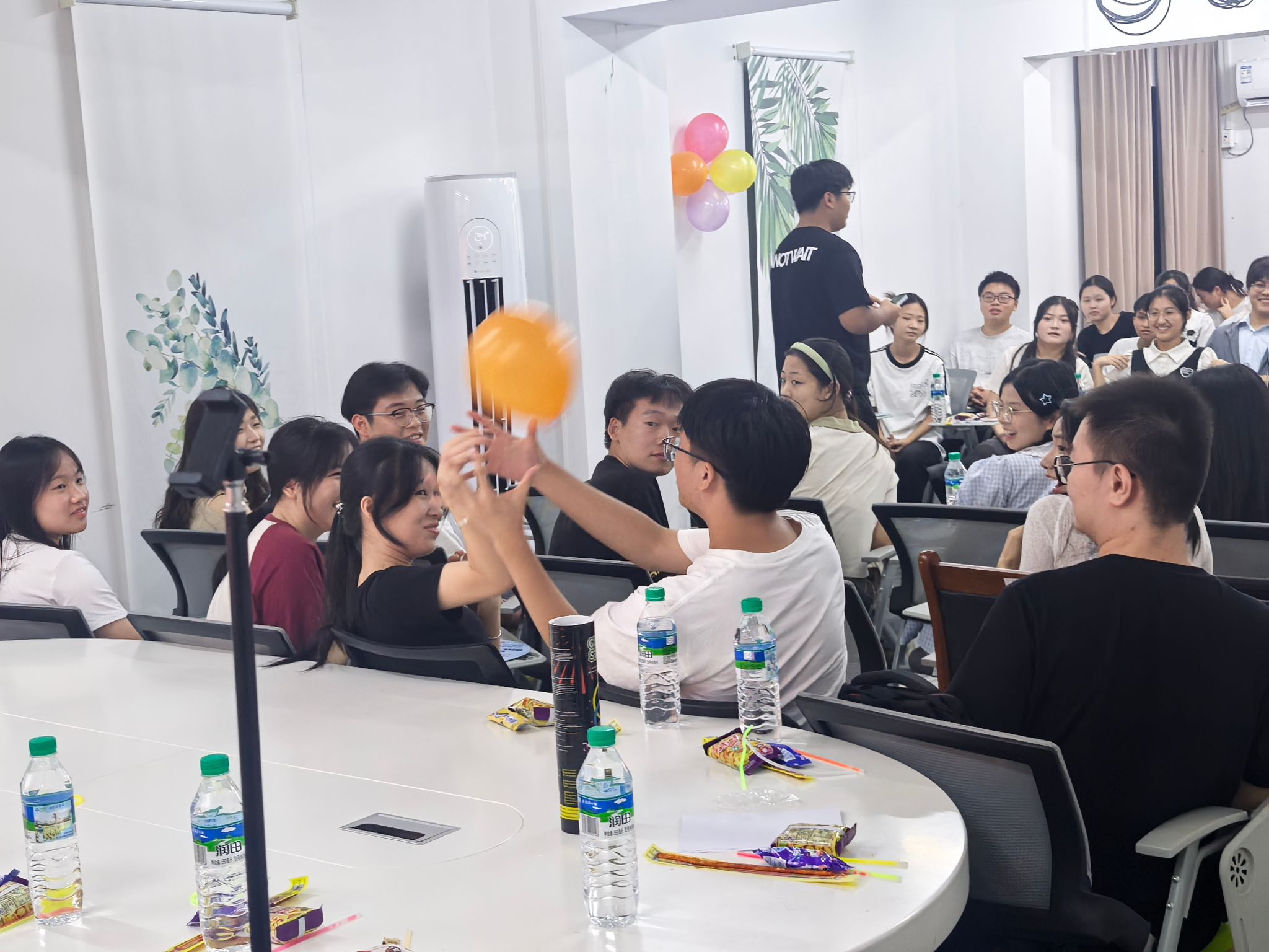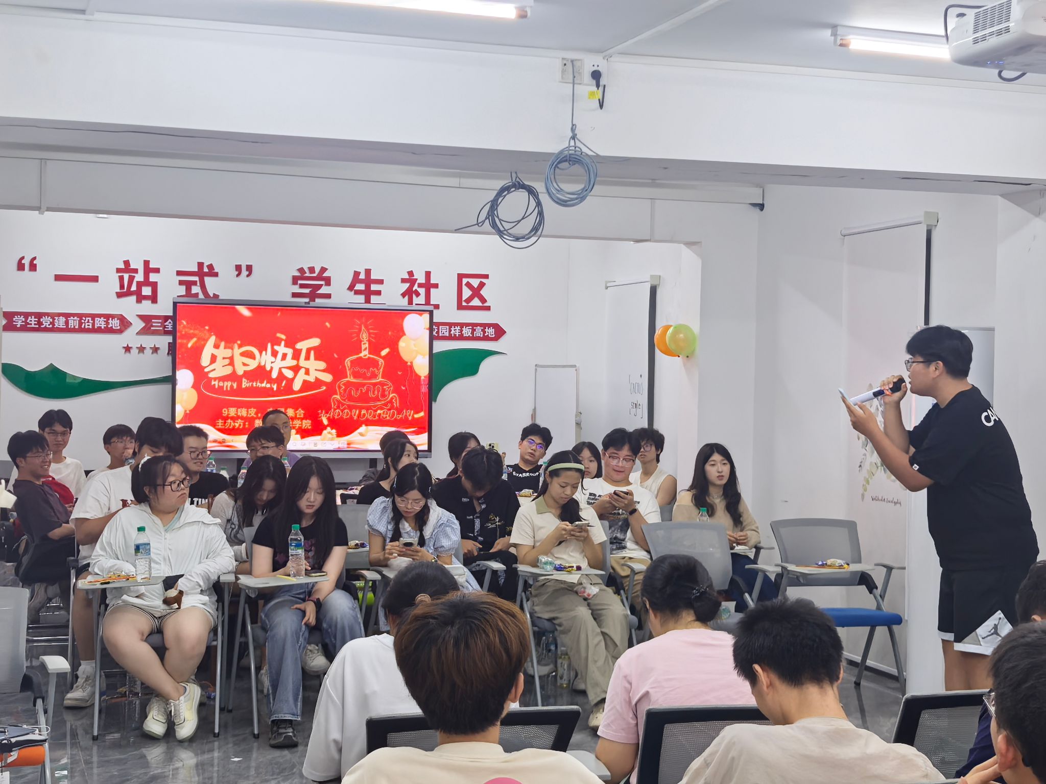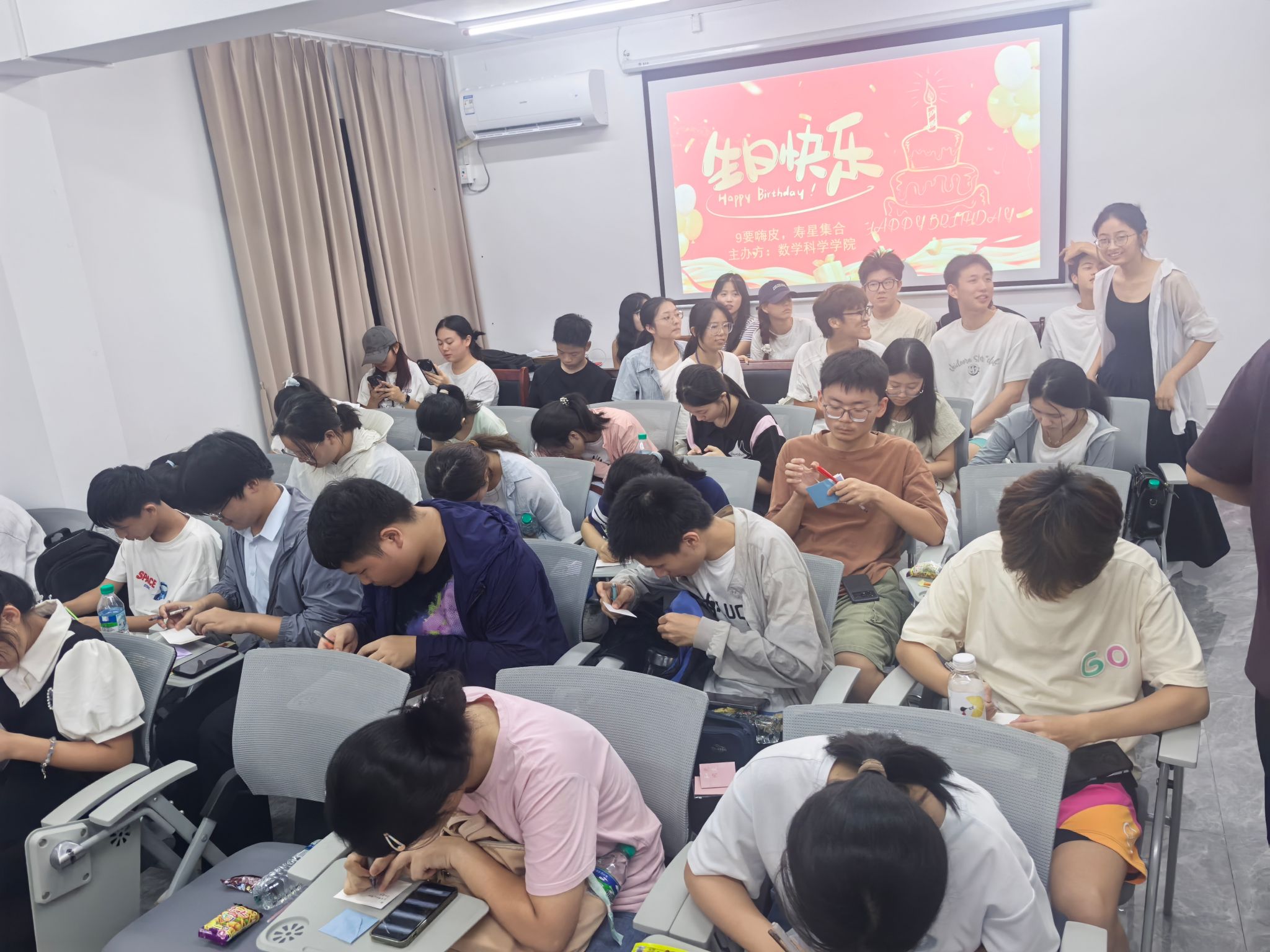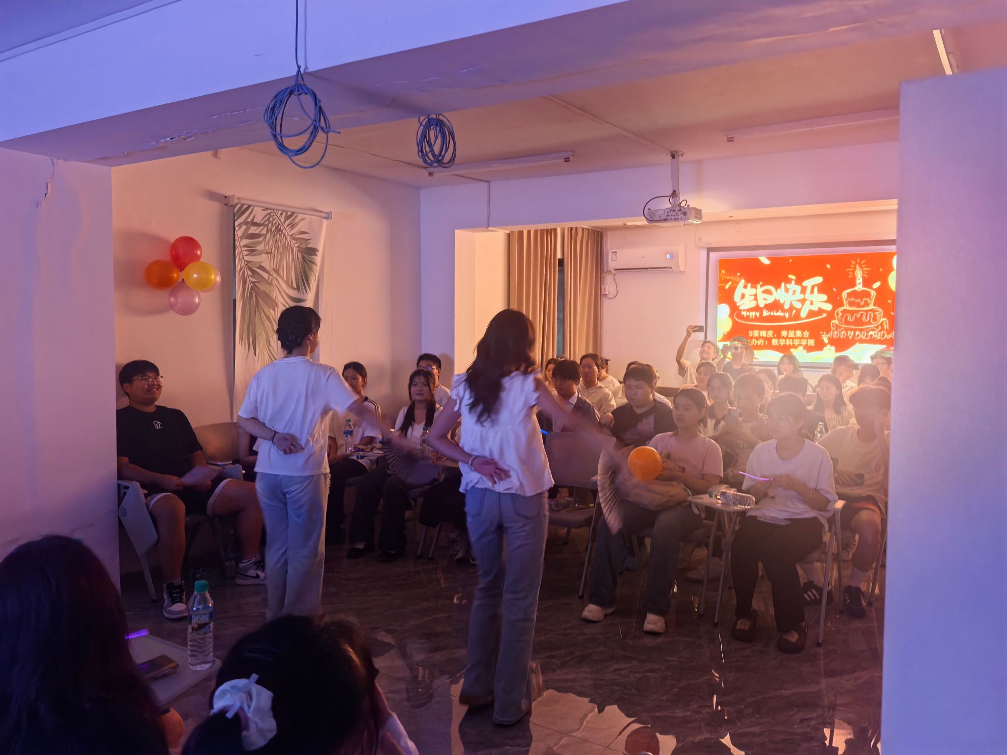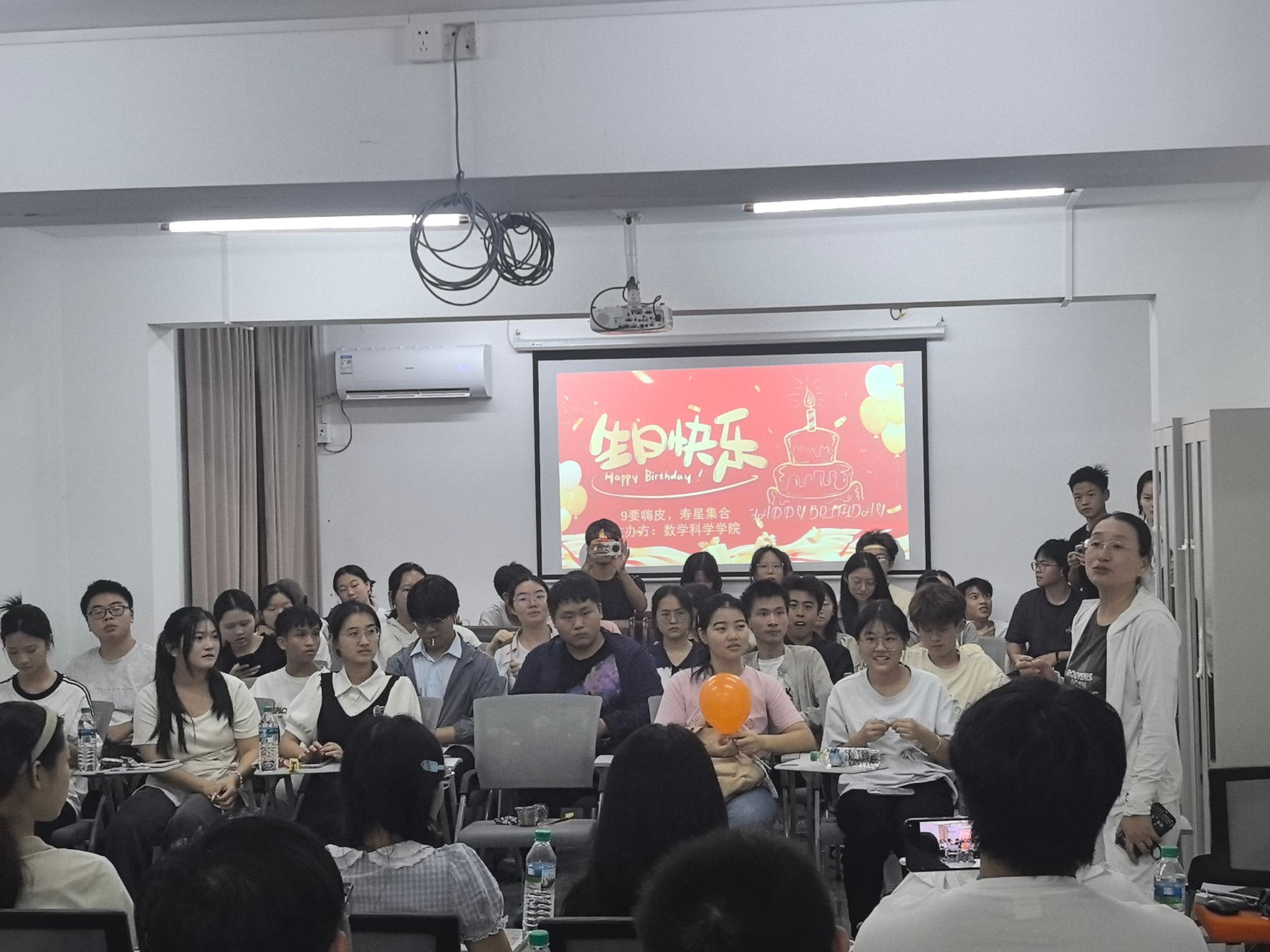 随后,妙趣横生的破冰游戏迅速拉近了同学们之间的距离,“猜数字”、“数学知识快问快答”等结合专业特色的小游戏更是将现场气氛推向高潮。伴随着熟悉的旋律,一个精美的生日蛋糕被缓缓推出,在场师生齐唱生日歌,寿星们许下美好愿望,现场气氛温馨感人。