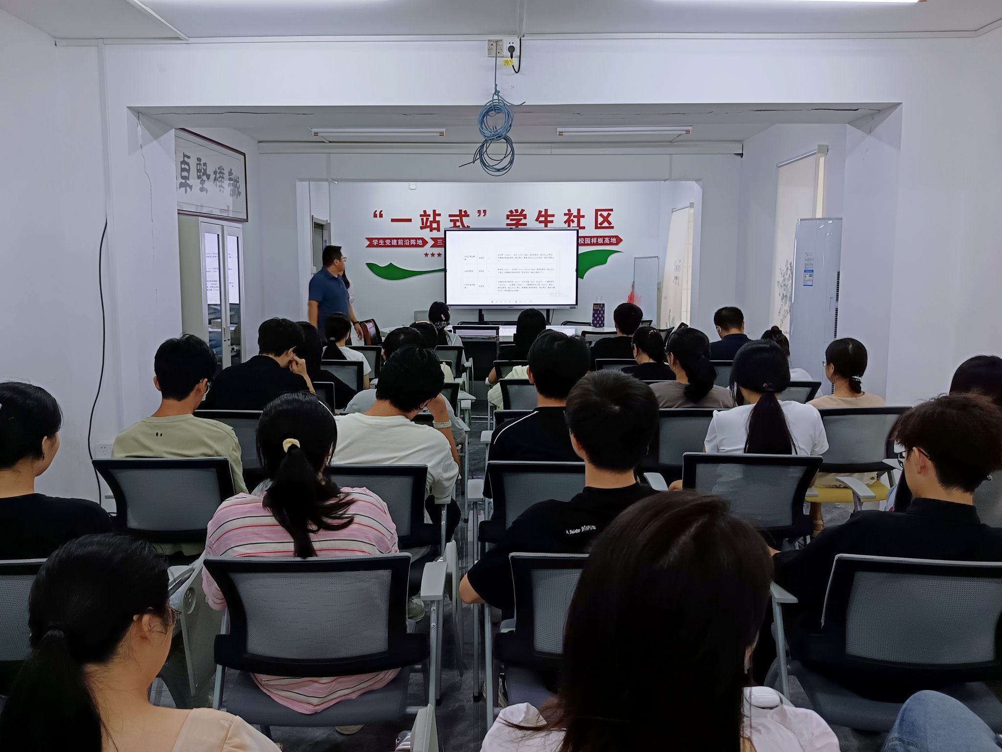 9月23日下午14:30,8827太阳集团“勇往直前”辅导员名师工作室特邀聚创考研高级咨询顾问李磊,在“红五星”一站式学生社区综合服务中心开展考研指导讲座。2023级、2024级学生积极参与。